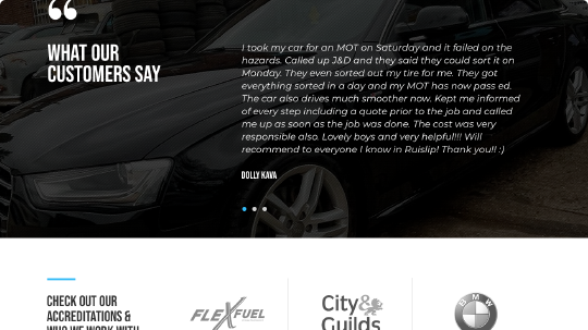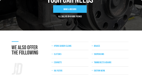 J&D Automotives is a trusted local garage based in Ruislip, specialising in servicing, repairs and maintenance for a wide range of vehicles. With a strong visual identity and a clear ambition to stand out, they approached Advansys to create a bold one page website that reflects their brand. We designed a highly visual site with a sleek dark aesthetic and subtle light blue accents to enhance key elements. The page showcases their expertise and service offering, while clearly presenting accreditations and trust signals that reinforce their credibility. Strong calls to action and client testimonials further support conversions, resulting in a modern, engaging and professional online presence.